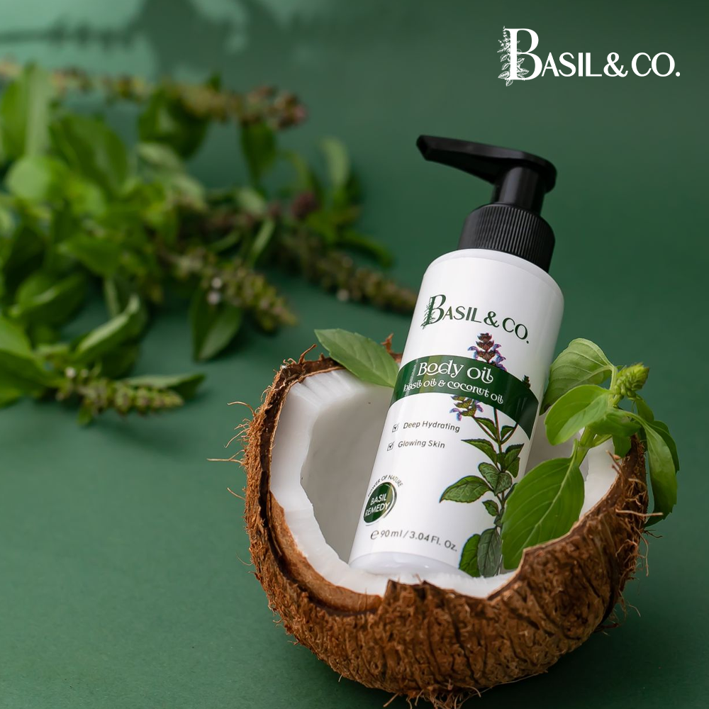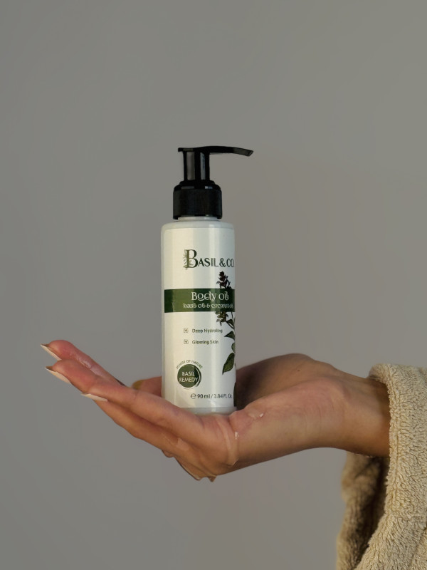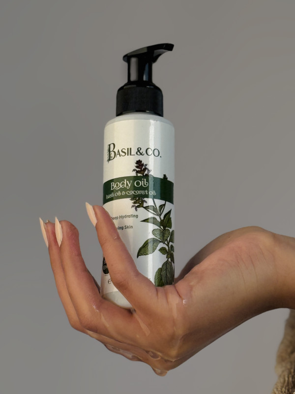 Naturally made oil rich in beneficial nutrients from basil and coconut.