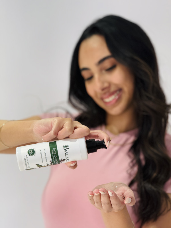 Natural deep- clean Face cleanser formulated from basil with a touch of lemon and peppermint for a daily glow and freshness.