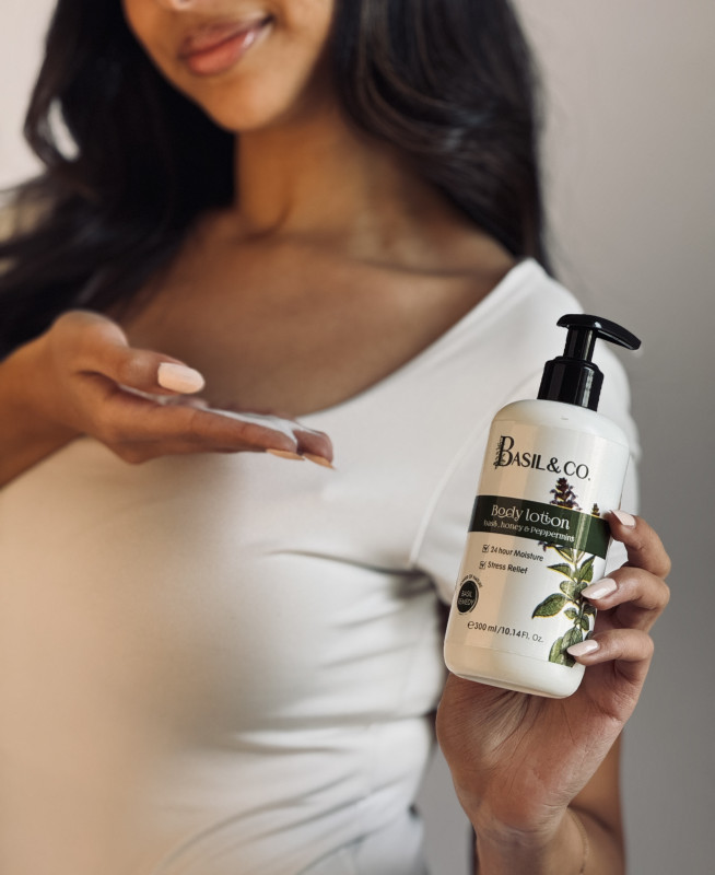 Natural body lotion made of basil& honey and peppermint